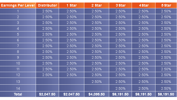 Terceira forma de pagamento – Comissões da Matriz (Mesmo não convidando ninguém o distribuidor ganha este bónus)